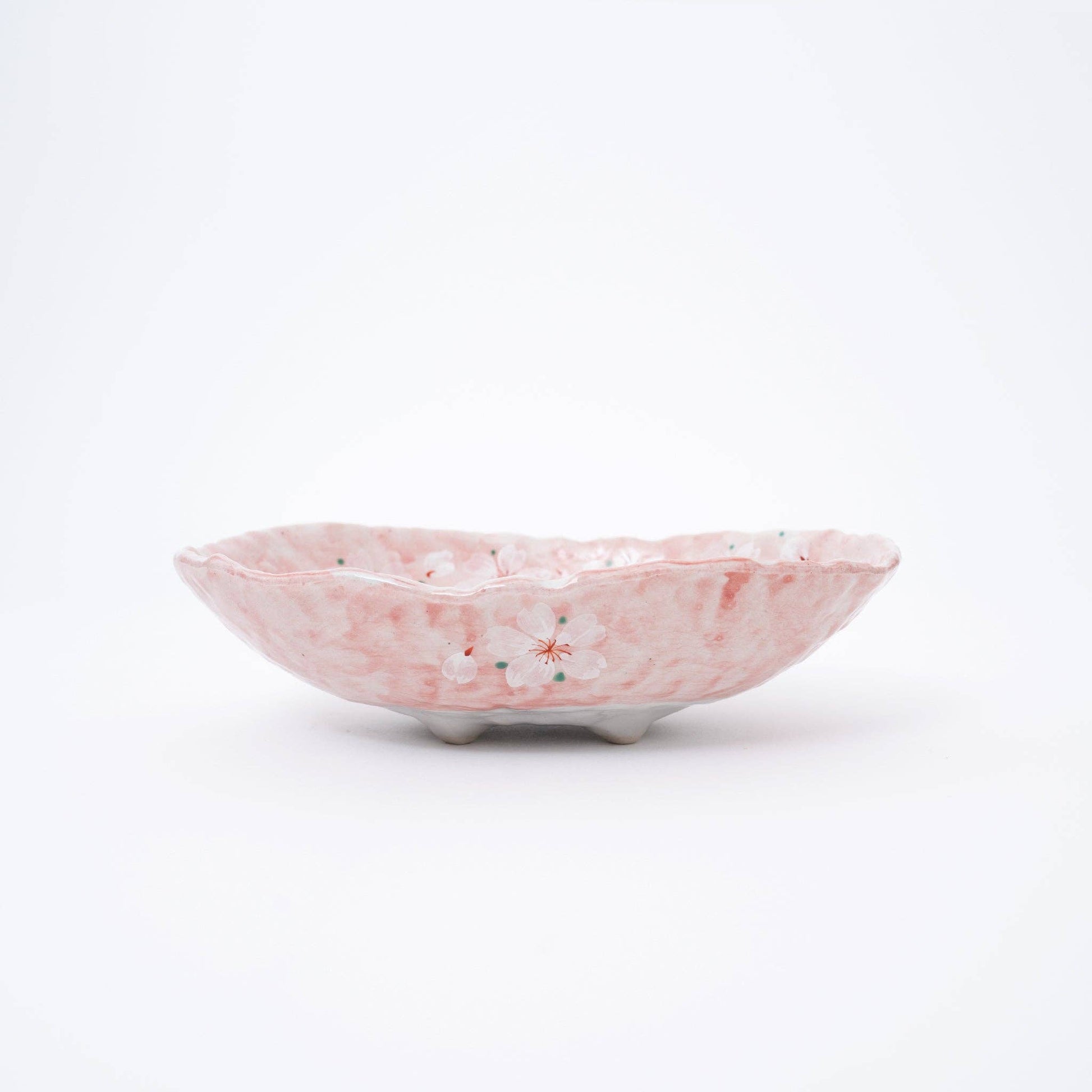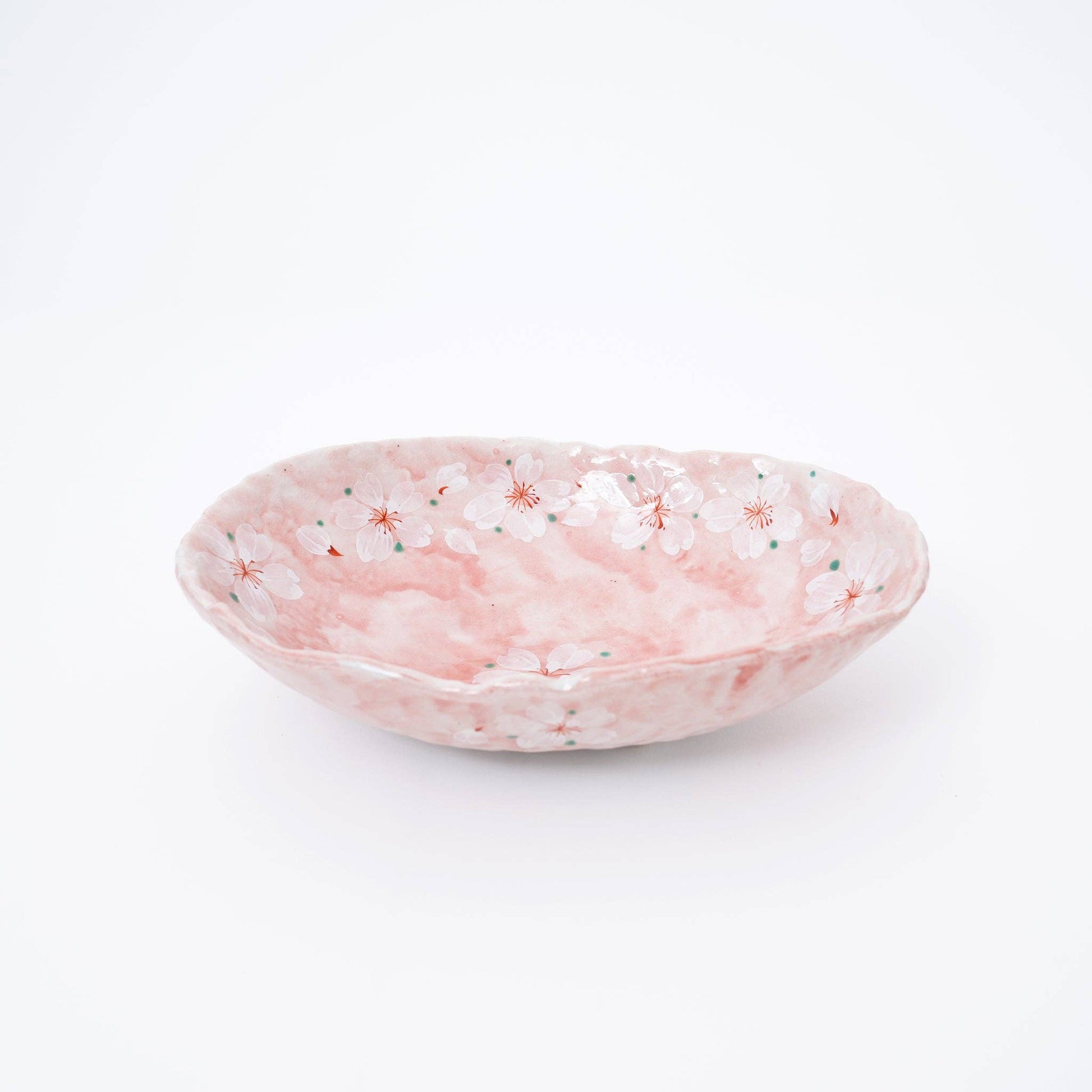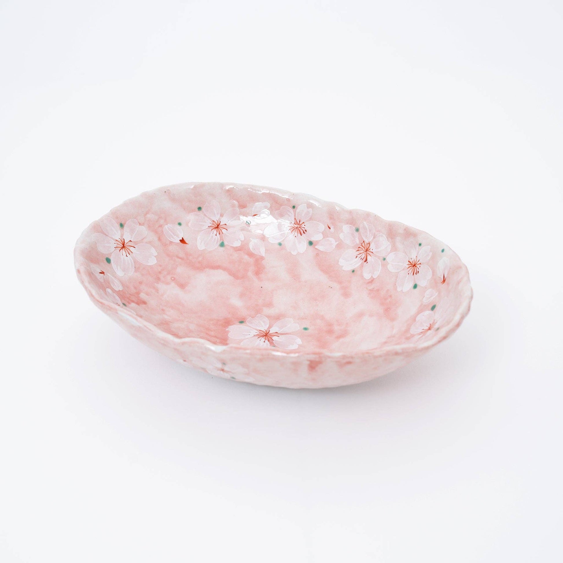 Handmade Pink Cherry Blossom Mino Ware Oval Serving Bowl